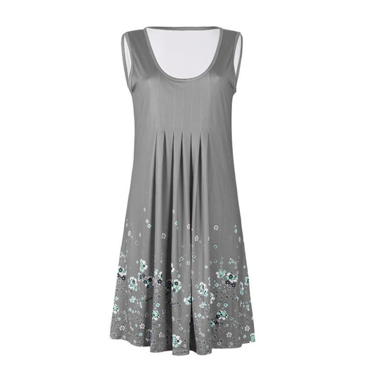 Casual A Line Floral Trim Sleeveless Dress