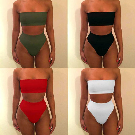 Sexy High Waist Cami Top Plus Solid Color Bikini