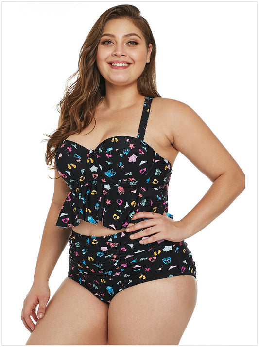 Sexy Explosion High Waist Plus Size Padded Cutout Knotted Bikini