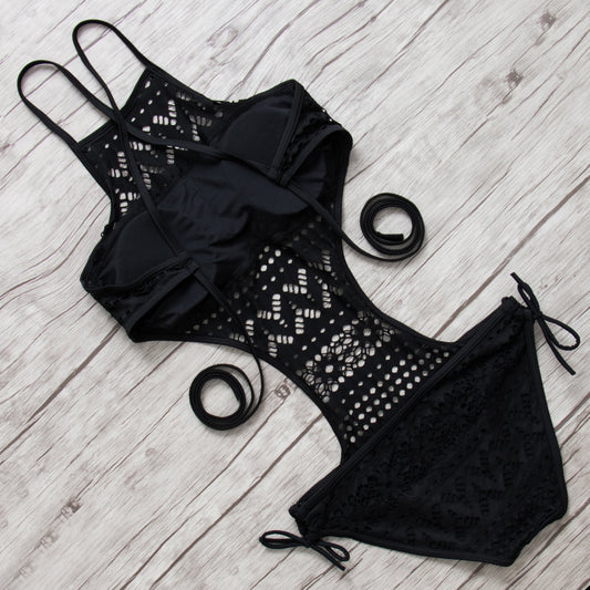 One-Piece Cut Out & Contrasting Plus Size Swimsuit