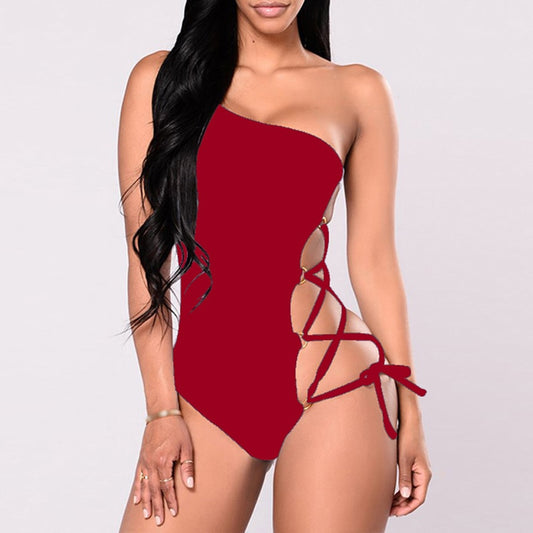 Sexy Plus Size Lace Up Front Tummy Control Conservative One Piece Swimsuit