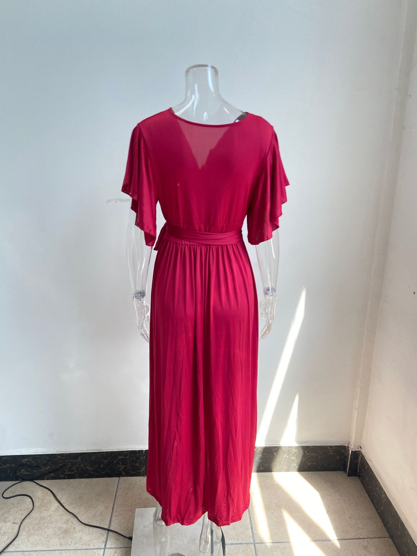 Coy Elegance Flared Sleeves Loose V-Neck Mopping Wrap Dress