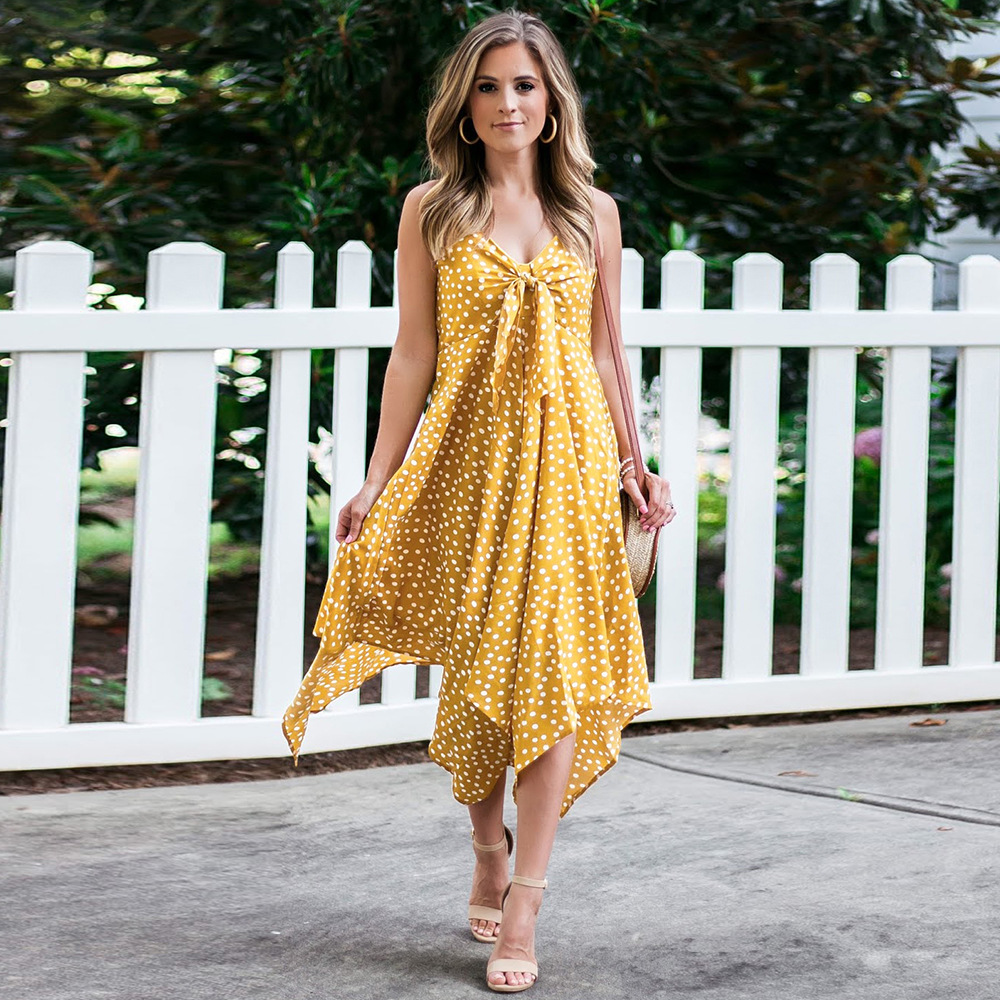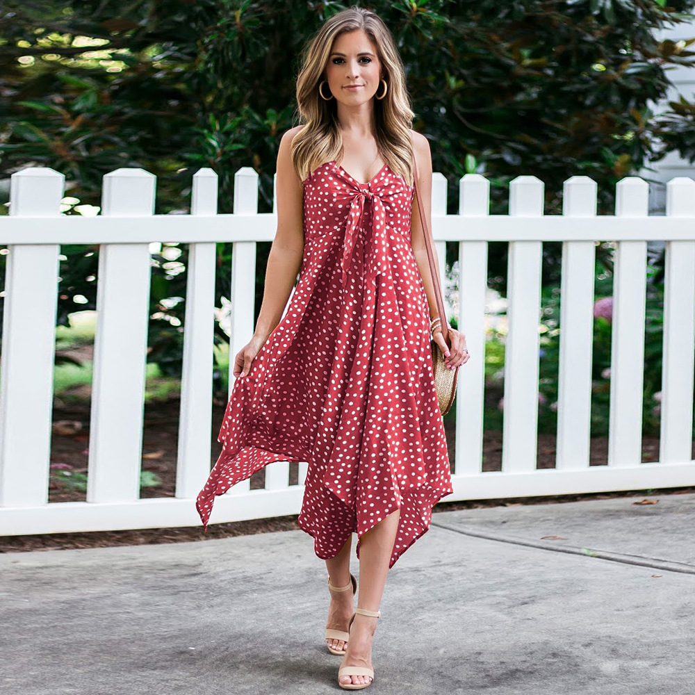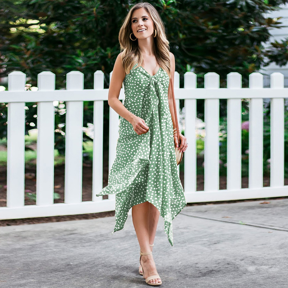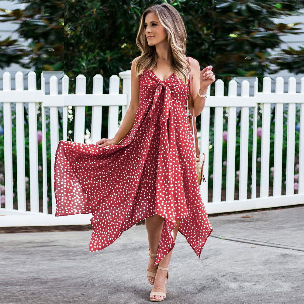 Sexy Summer Polka Dot Print Irregular Skirt Swing Dress